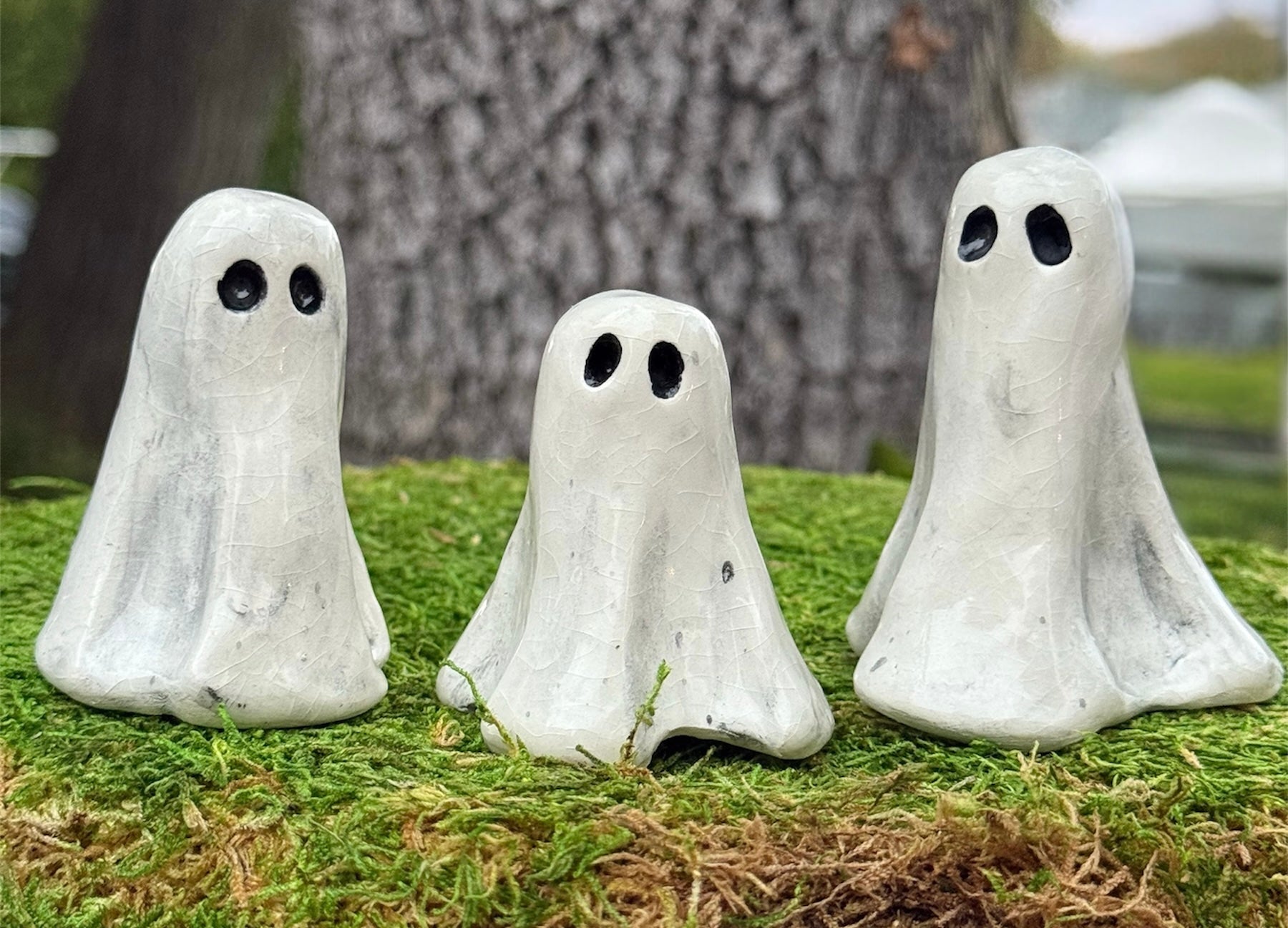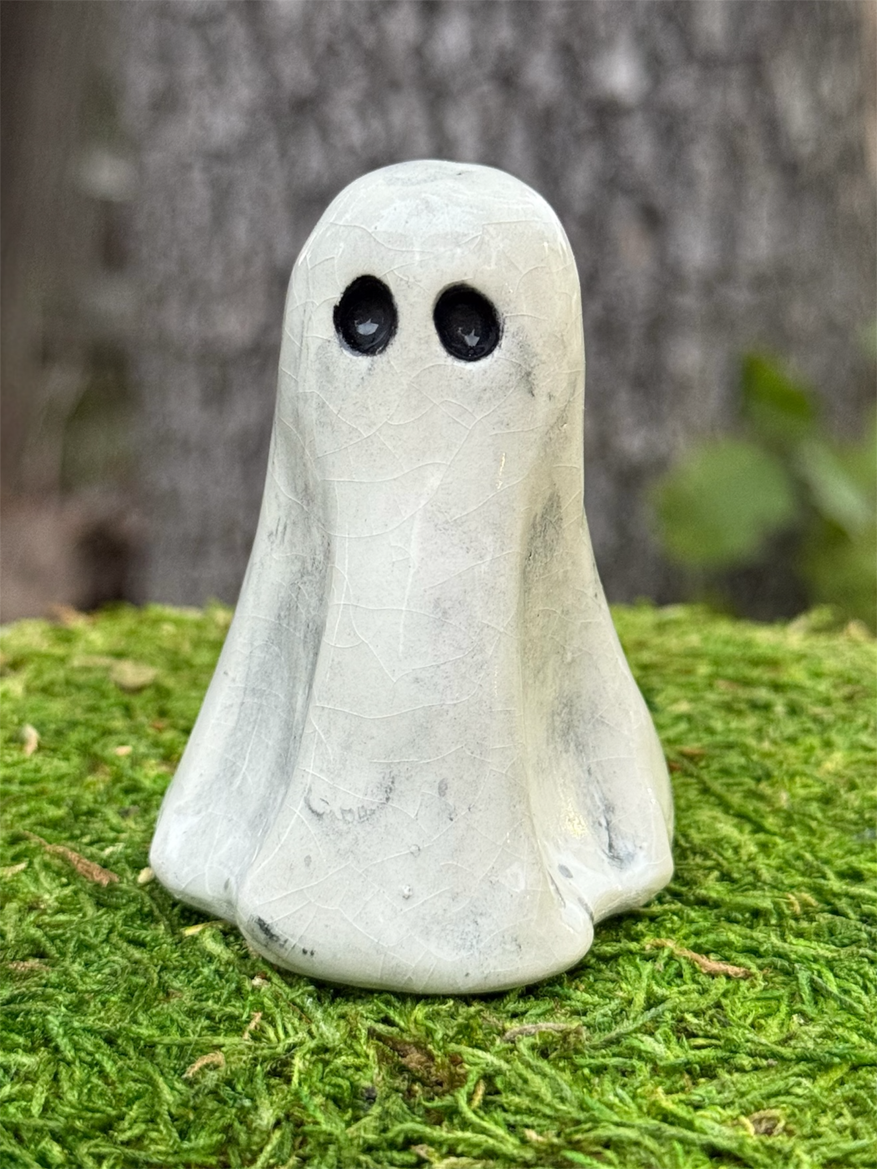 Hand shaped Hallow Folk. these charming ghost figures bring a touch of whimsy to any space. Each ghost is unique, full of personality, and crafted to capture the playful spirit of handmade art.