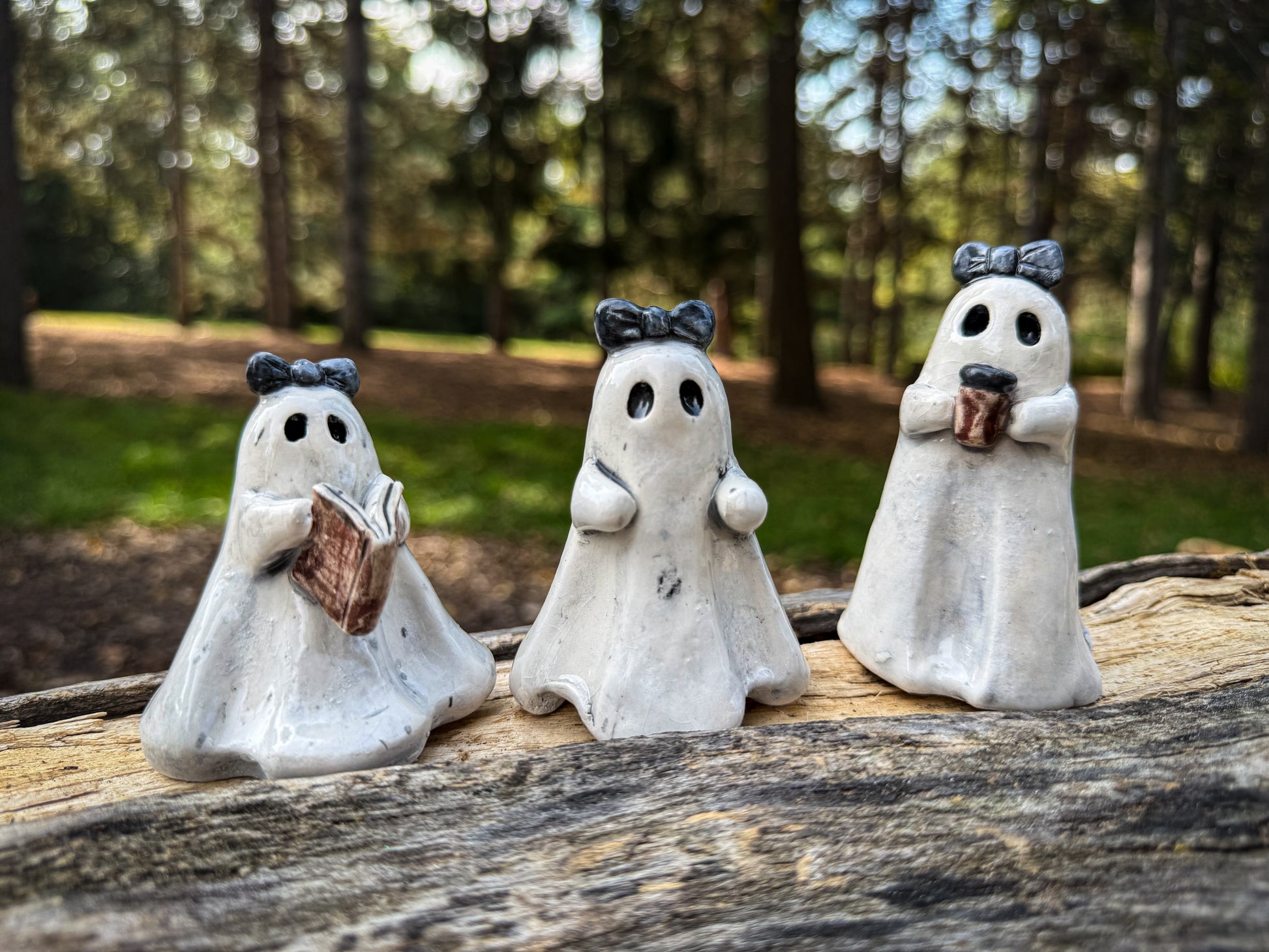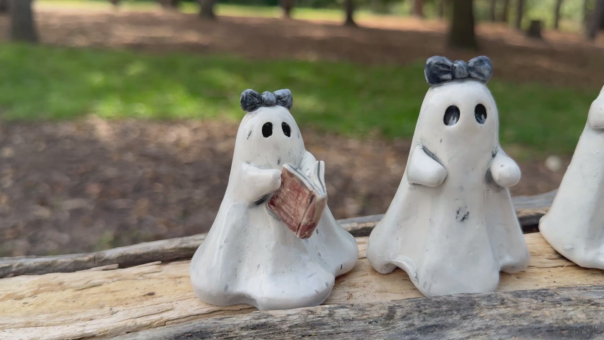 In a quiet corner of the world, three little ghosts with bows on their heads float through cozy spaces, each with her own way of passing time.